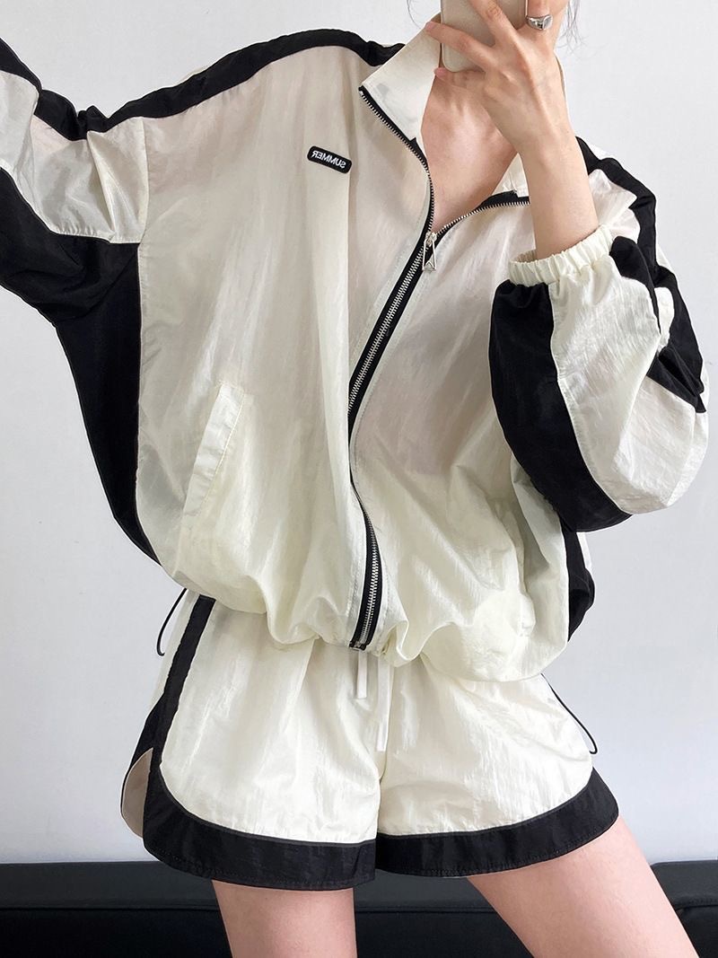 Color-blocked Sun-protective Clothing Casual Lightweight Outfit Set