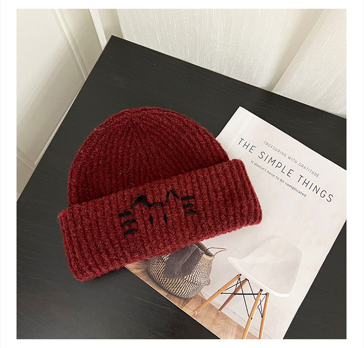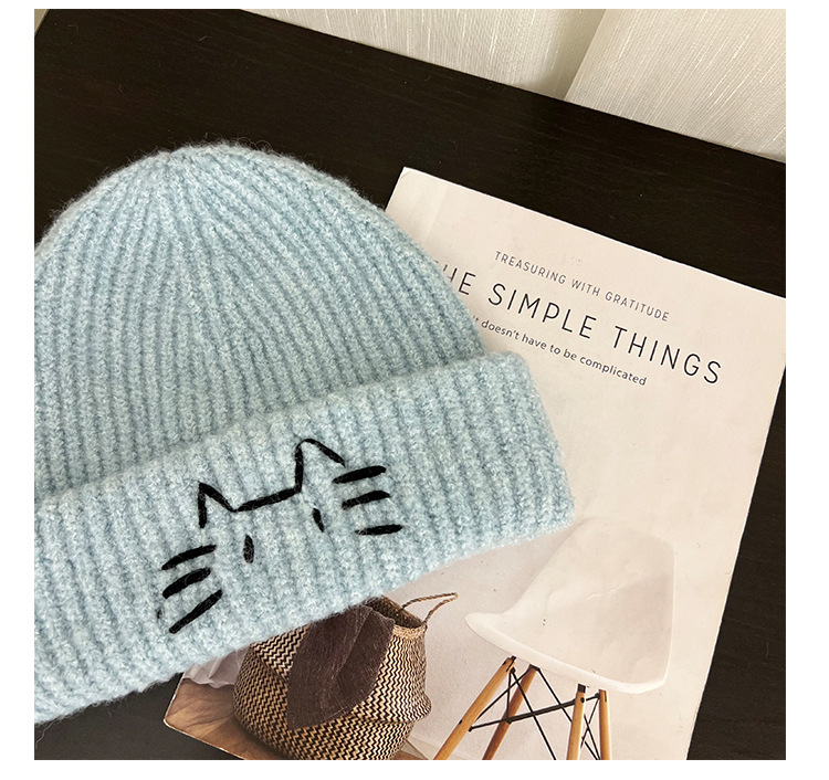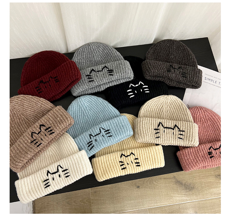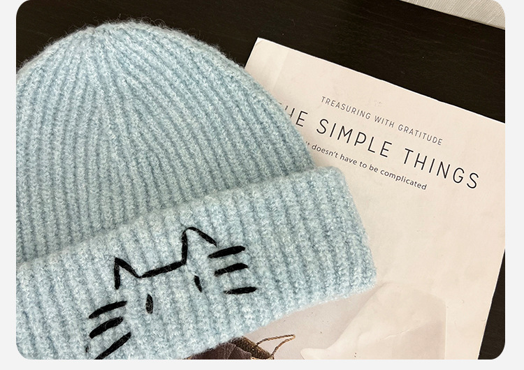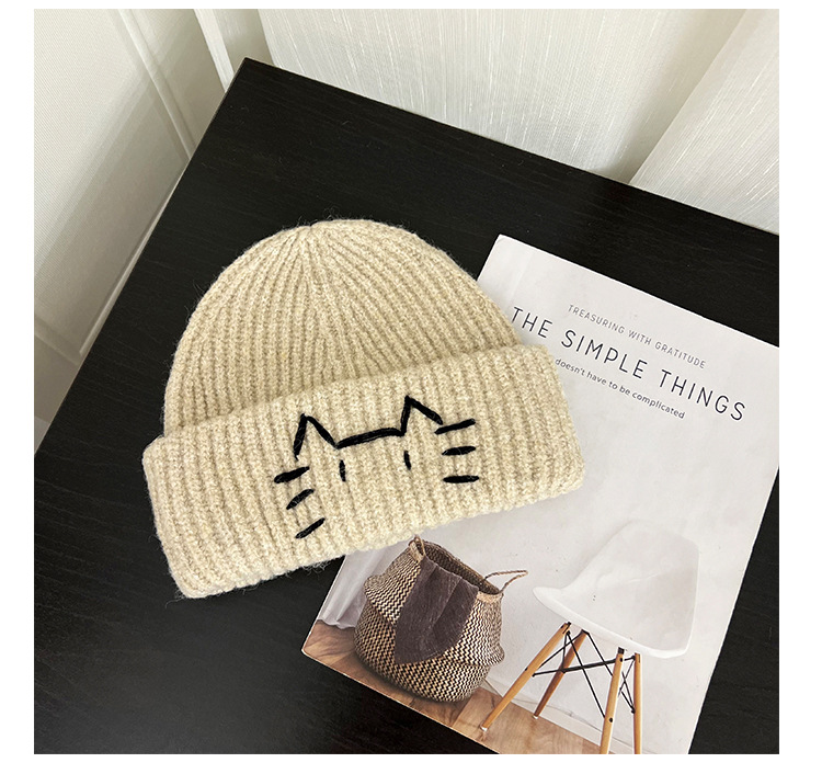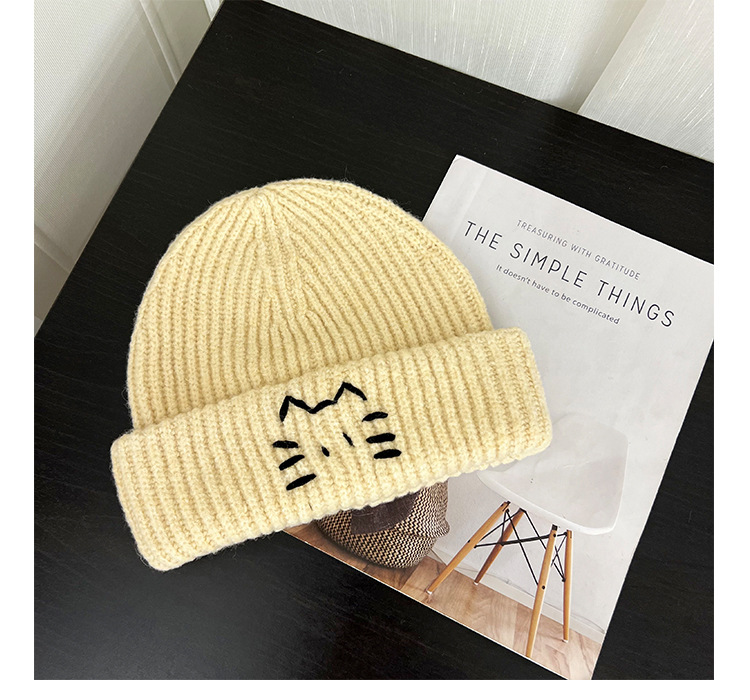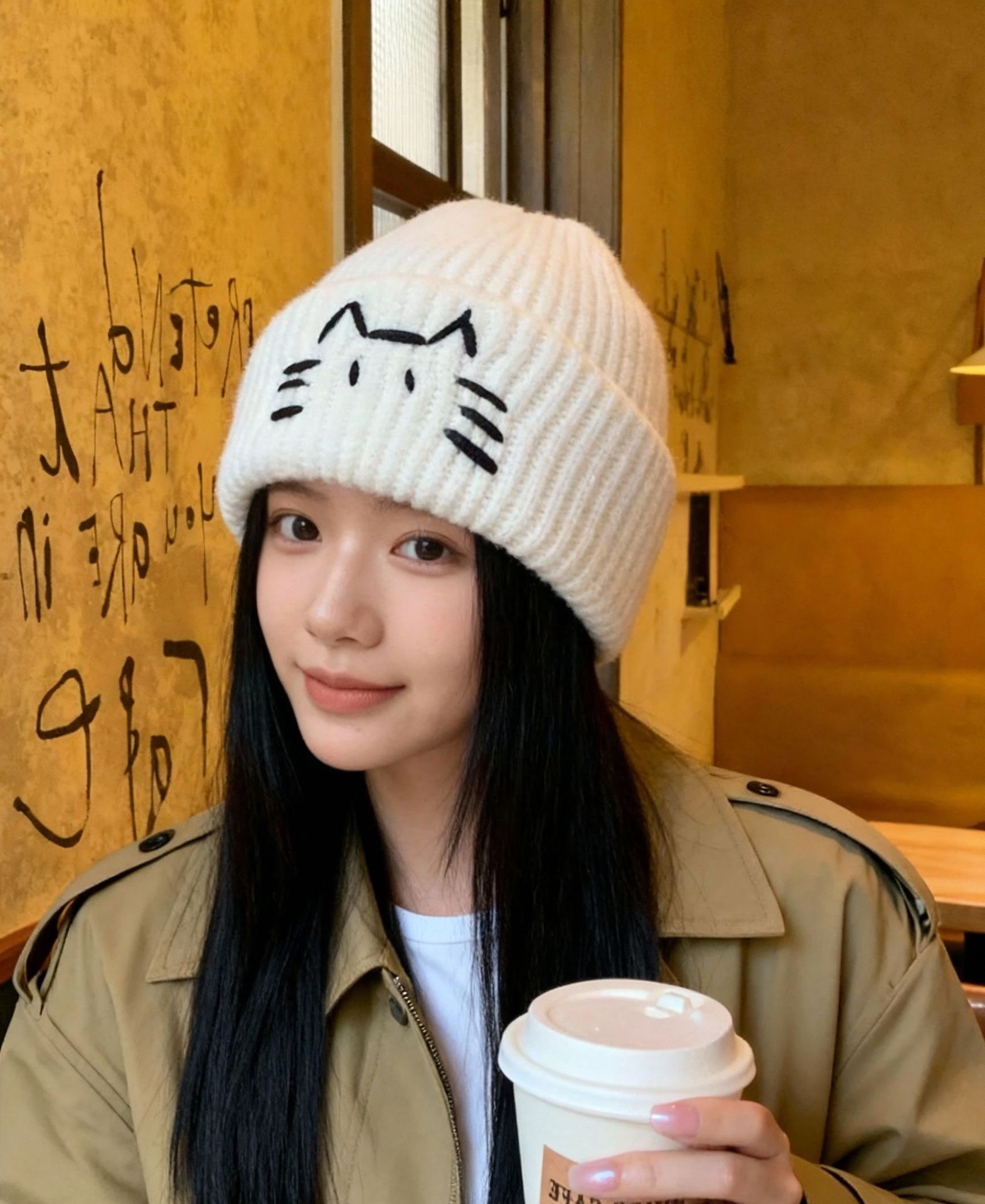 Cute Line-design Cat Knitted Hat For Womenkeeps You Warm In Fall And Winter