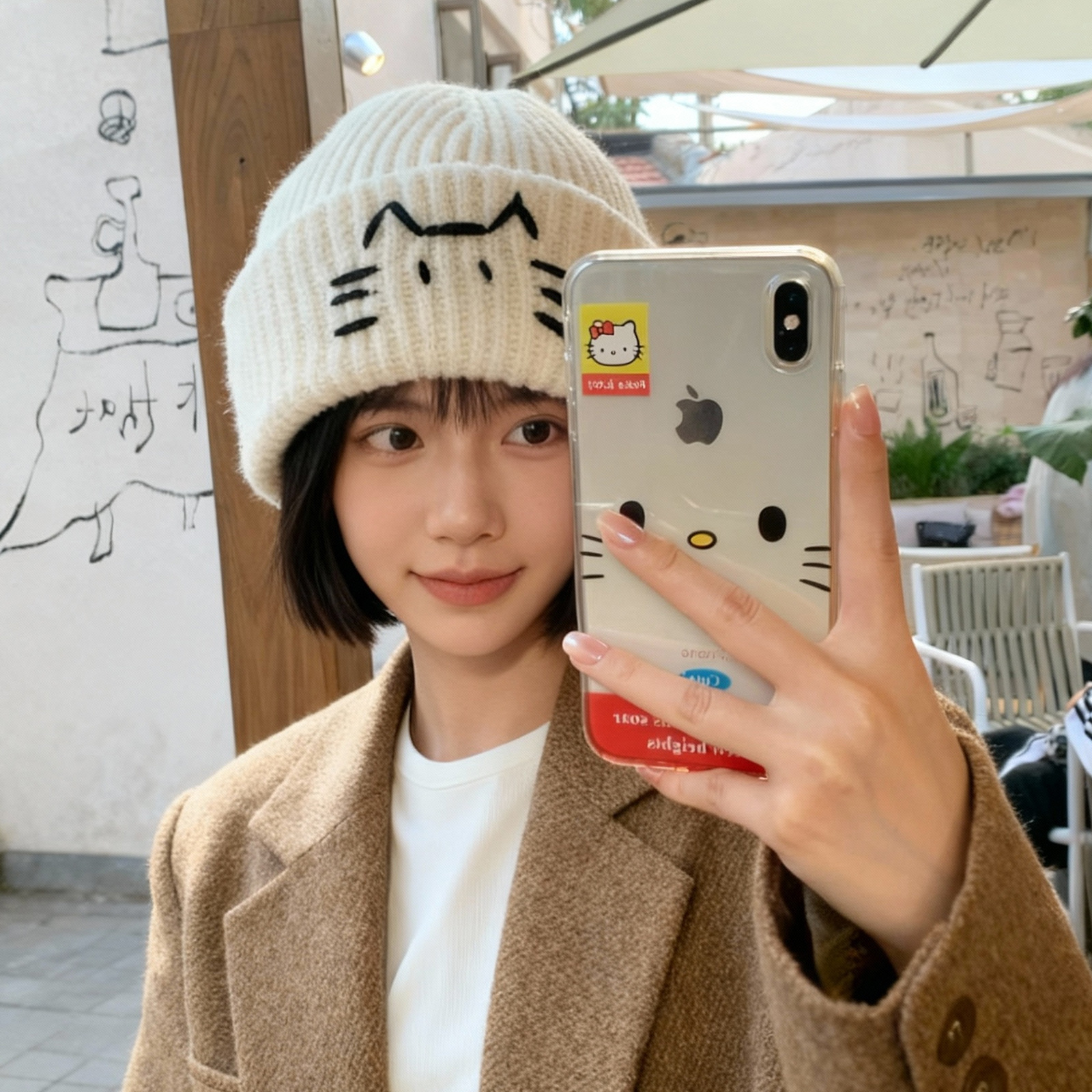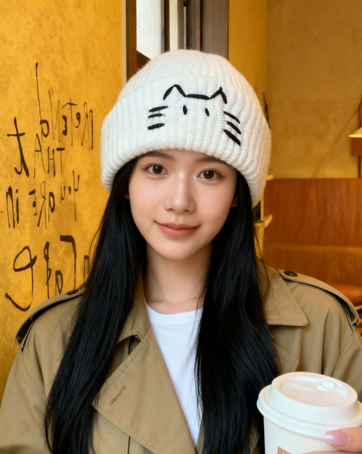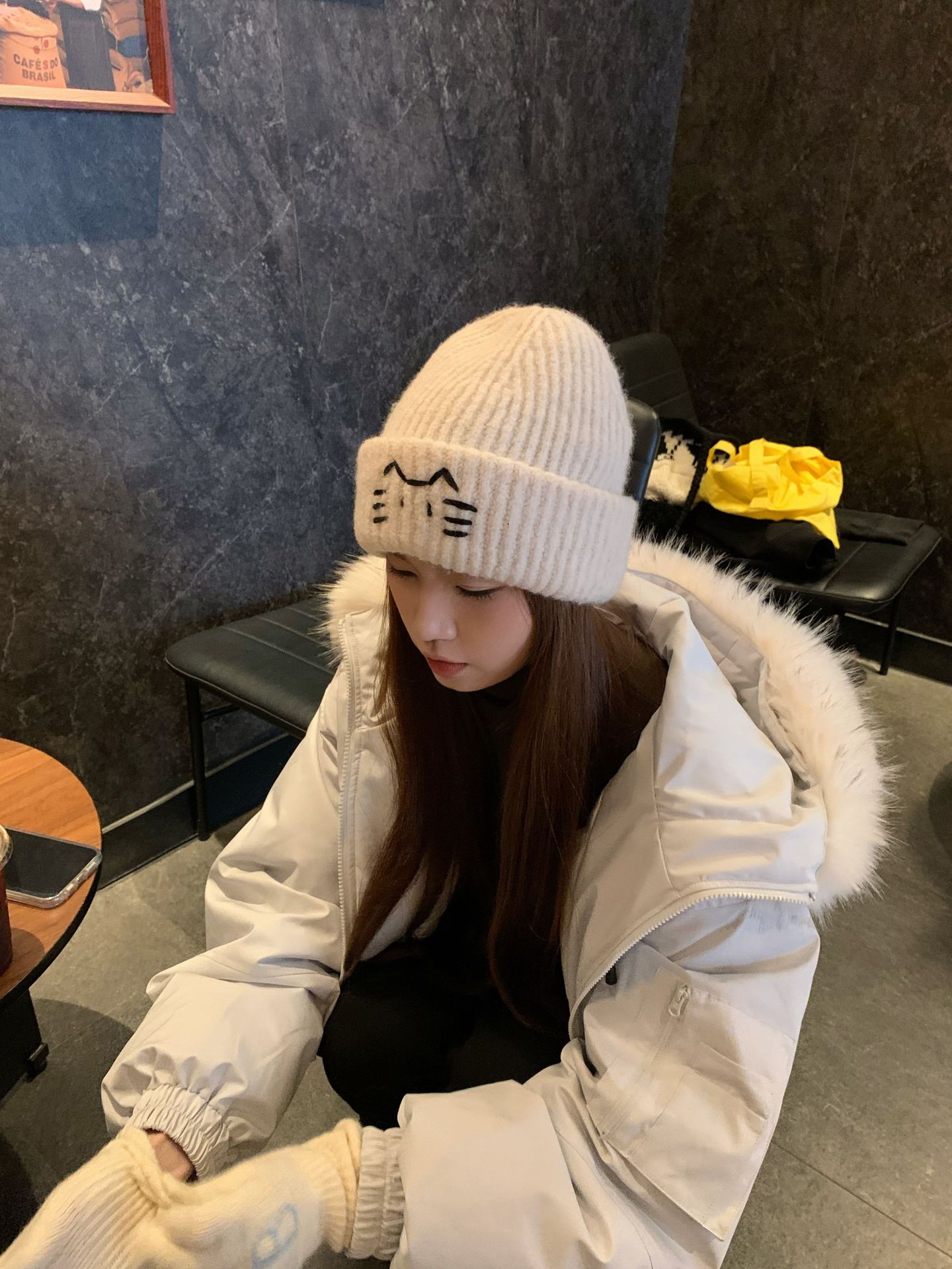 Cute Line-design Cat Knitted Hat For Womenkeeps You Warm In Fall And Winter