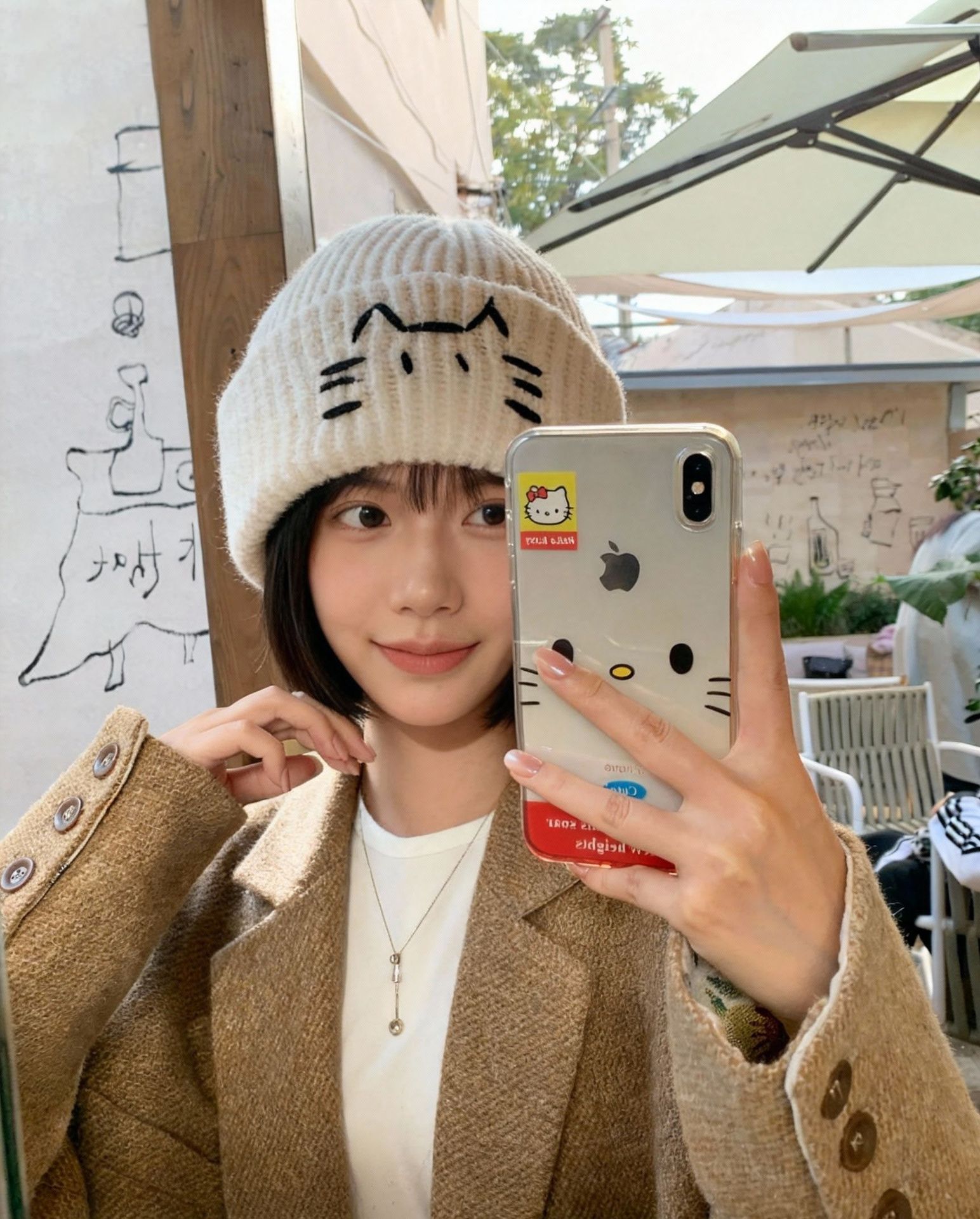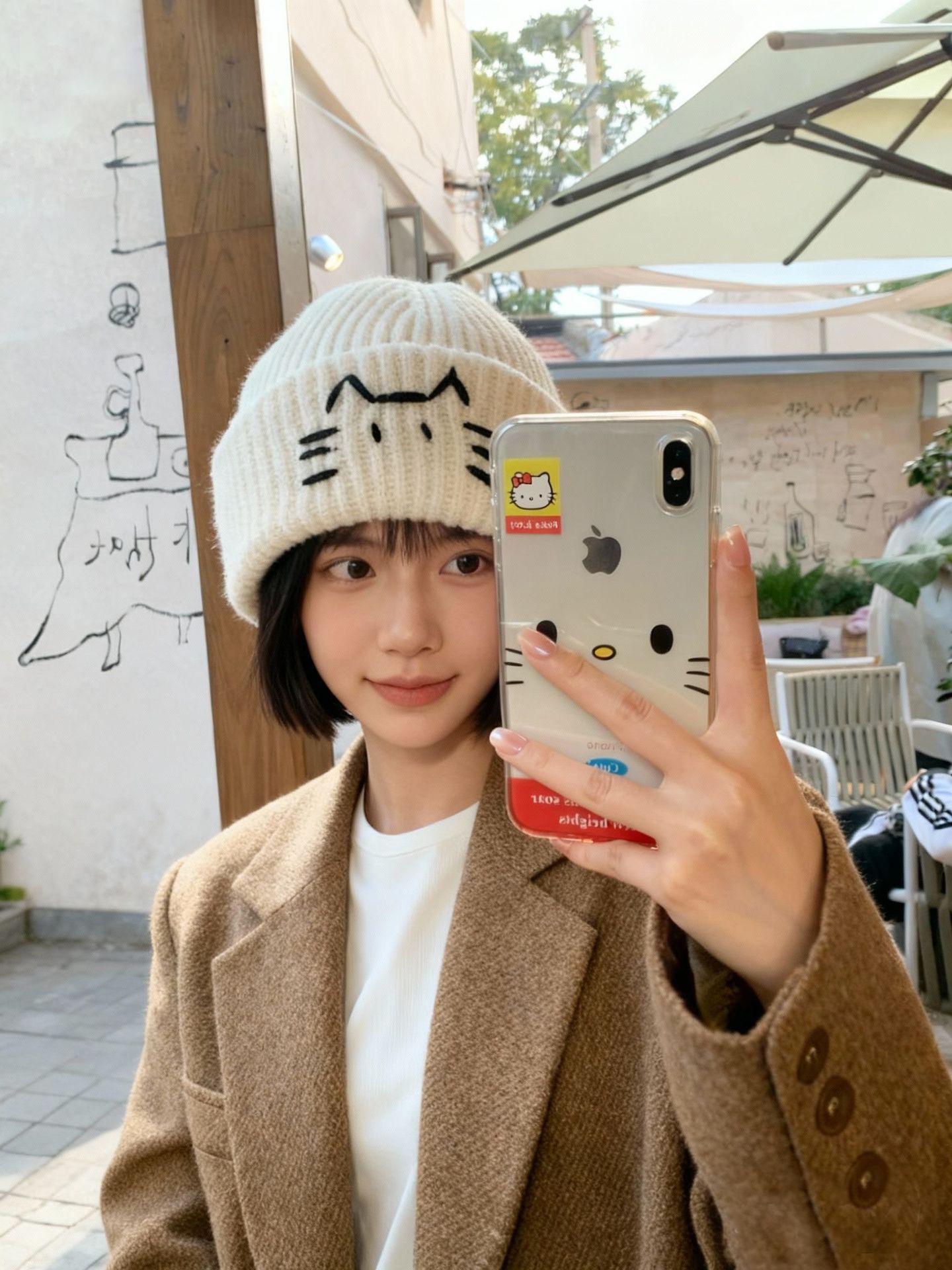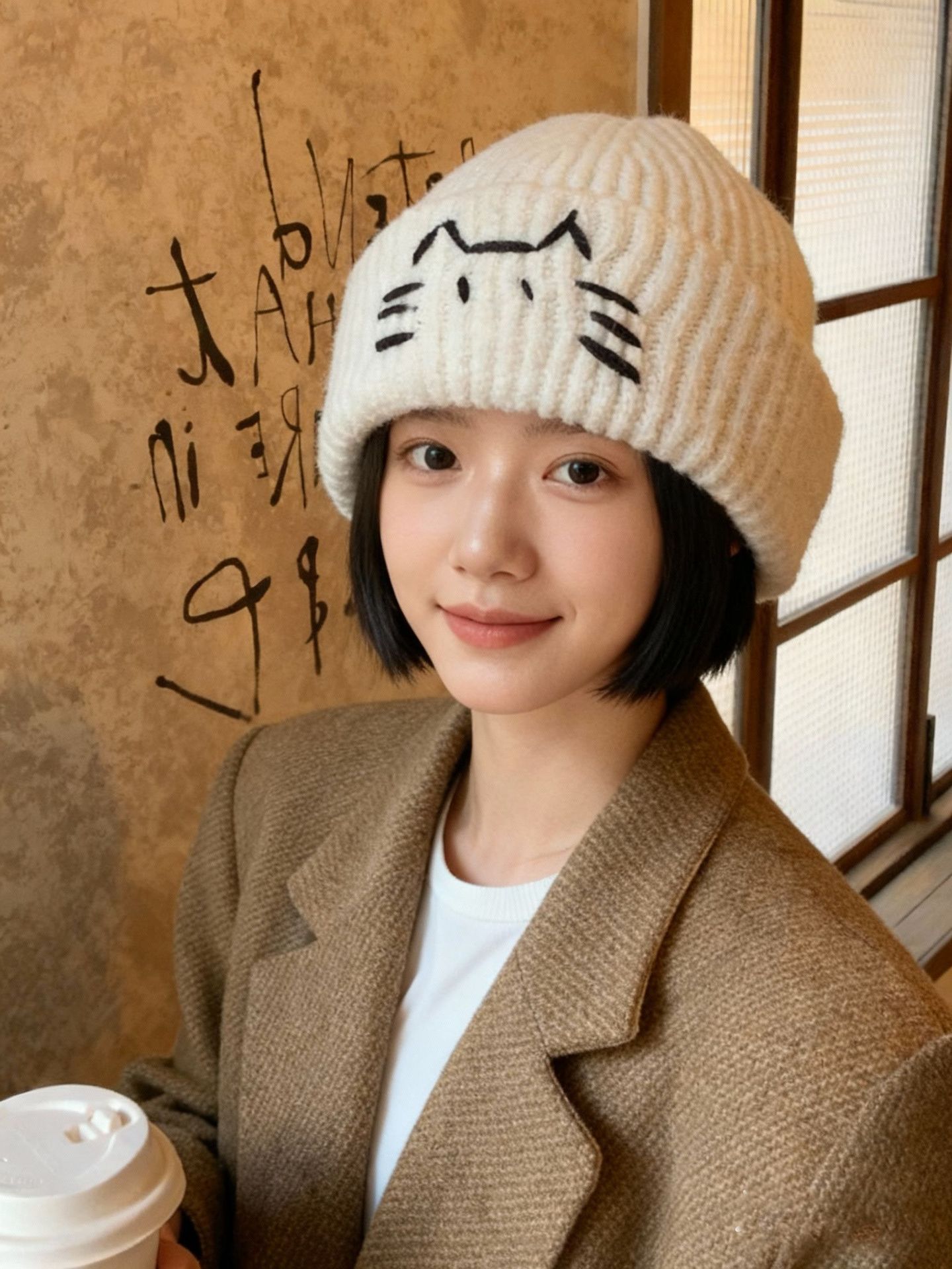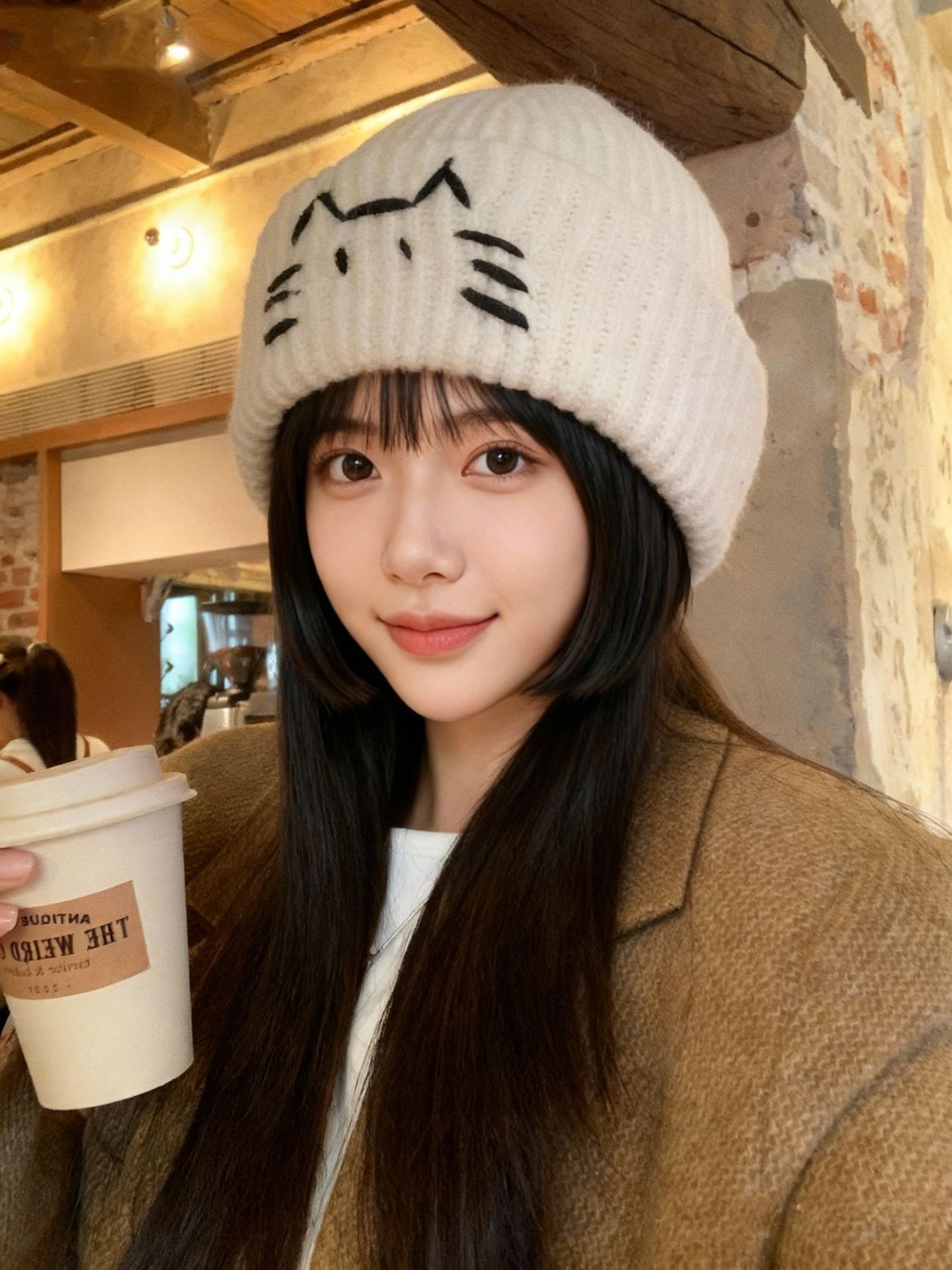 Cute Line-design Cat Knitted Hat For Womenkeeps You Warm In Fall And Winter