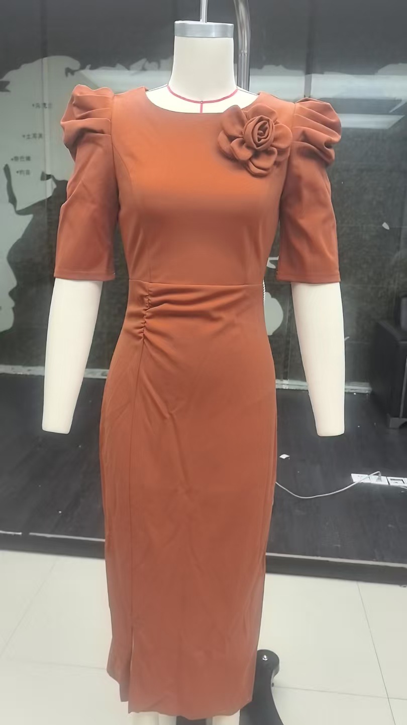 Elegant High-waisted Figure-hugging 3D Floral Short-sleeve Dress
