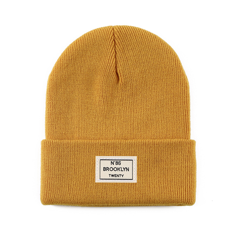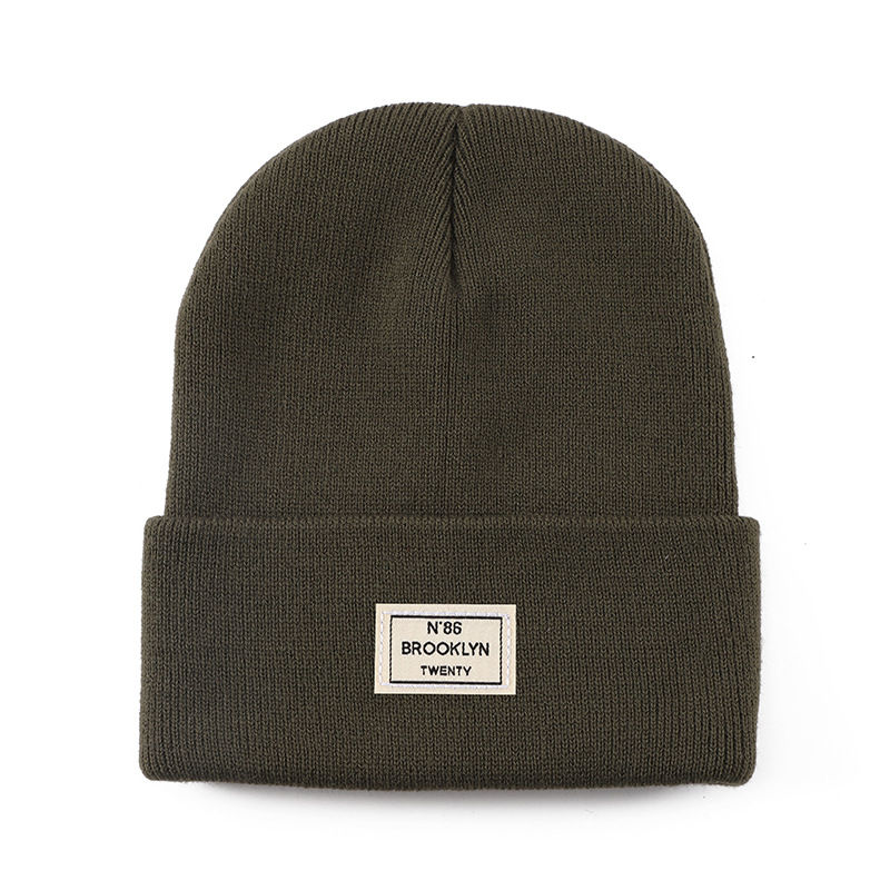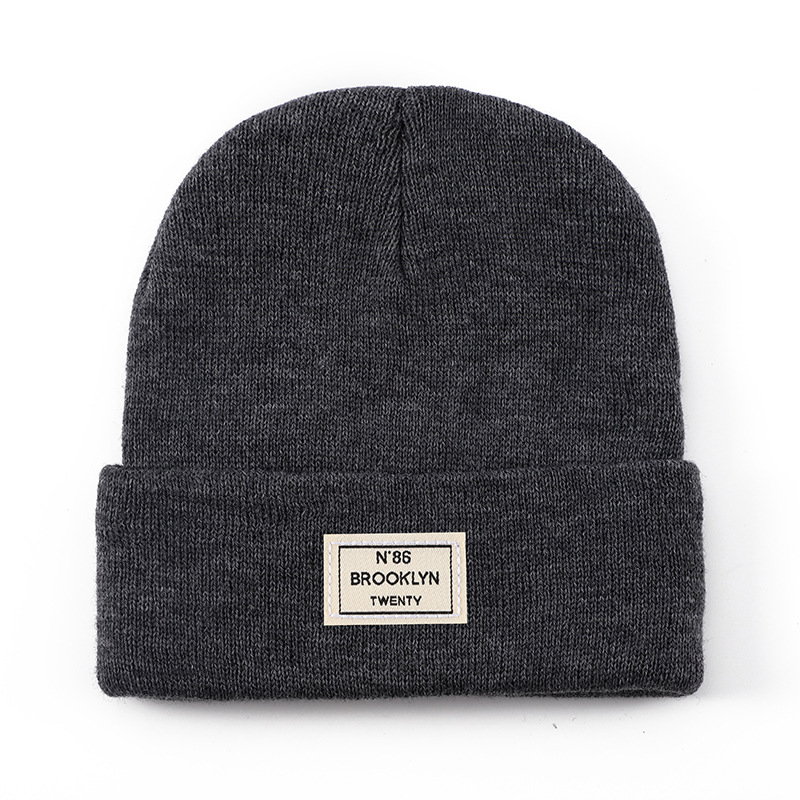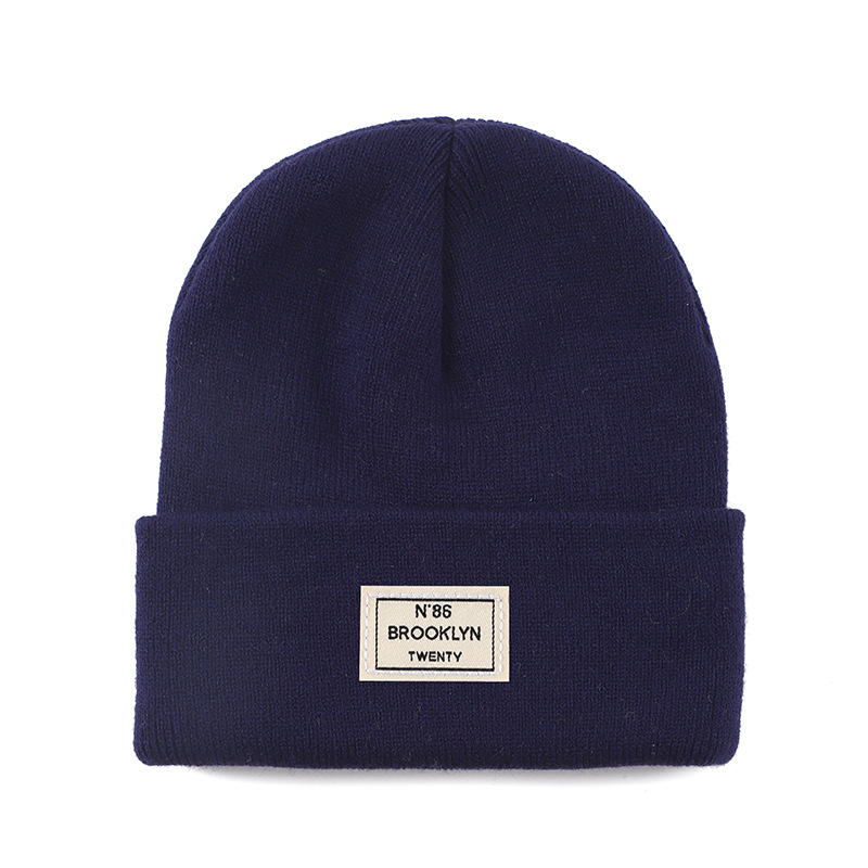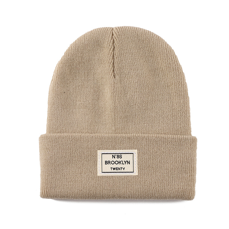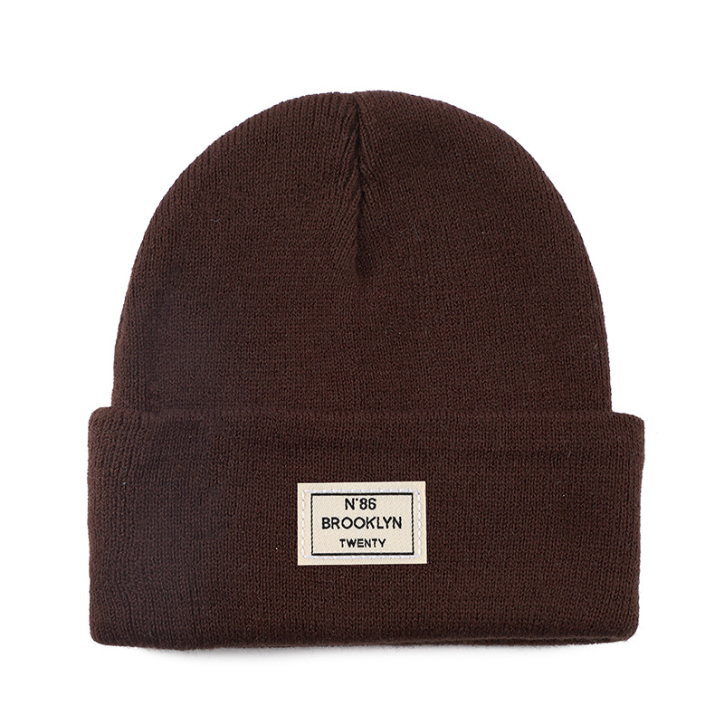 Knitted Beanie With Brand Label Stylish And Fashionable