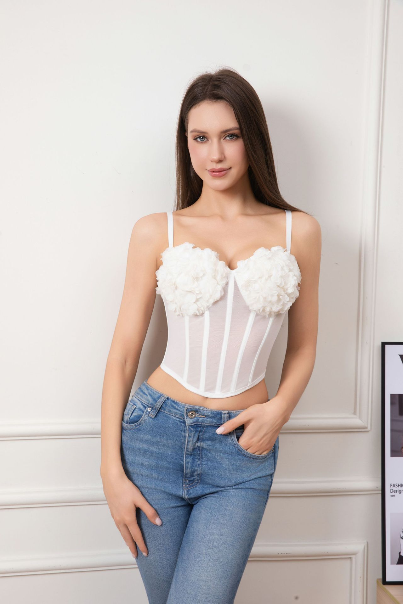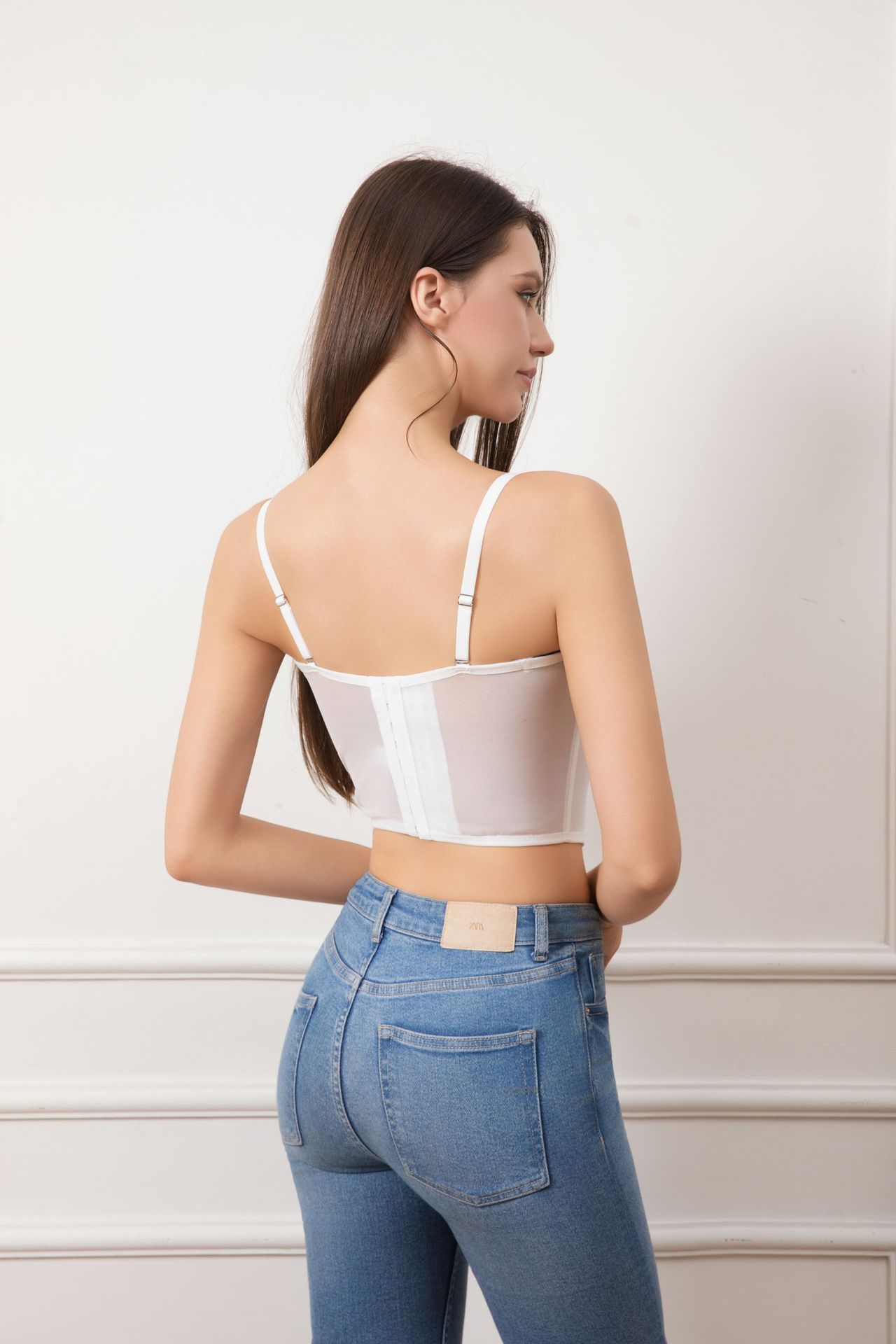 Mesh-panelled Spaghetti-strap Tube Top With Underwire Support