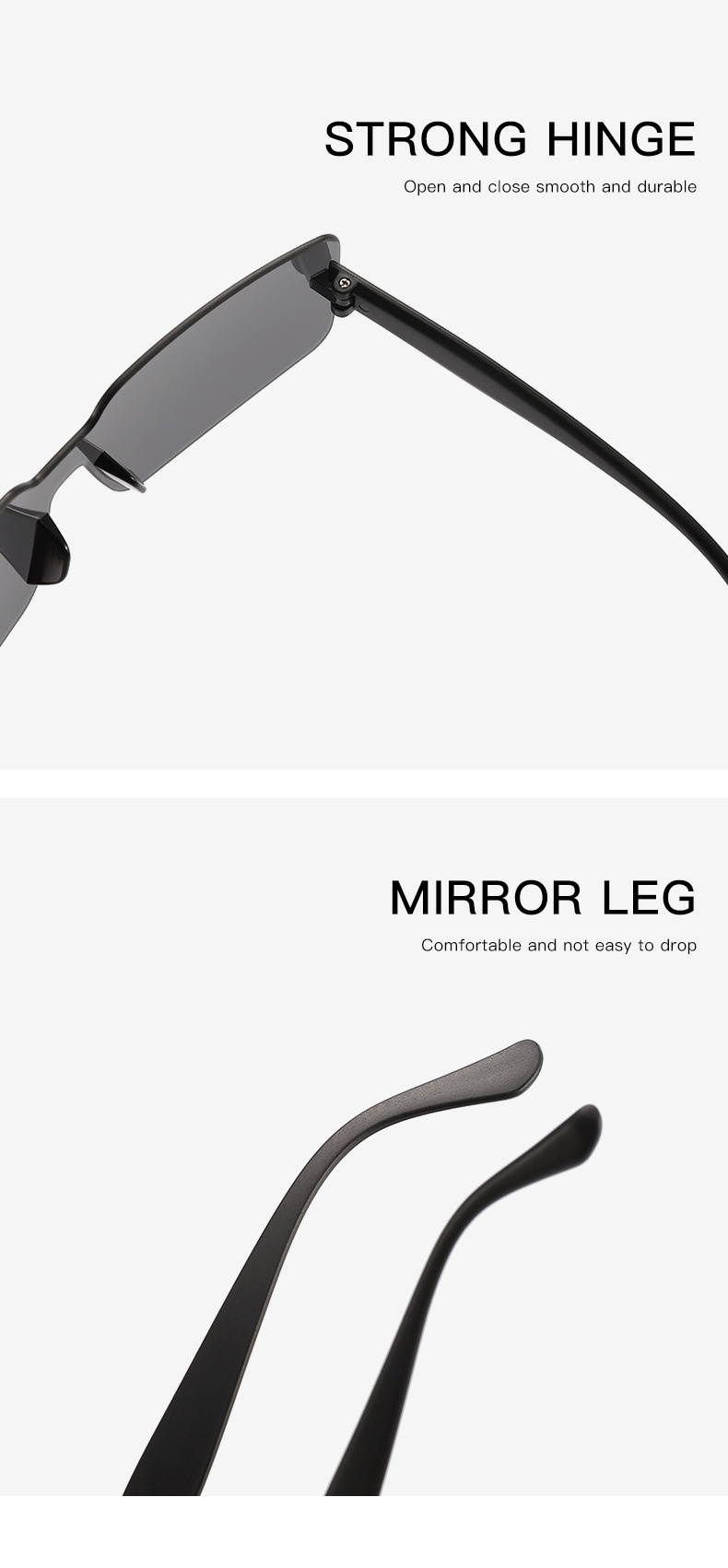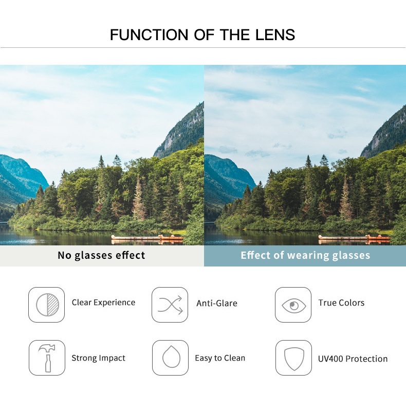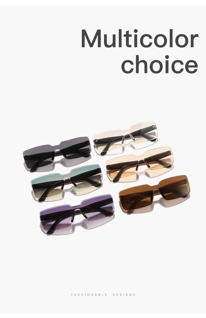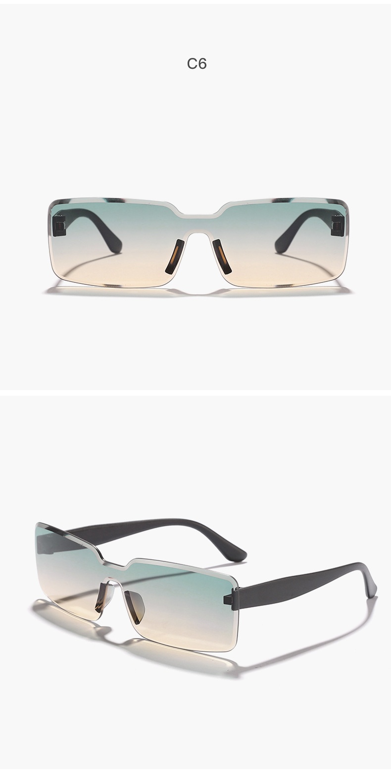 Colors: Black frame with all-gray lenses, tea frame with all-tea lenses, black frame with dual-gray lenses, black frame with champagne lenses, black frame with gradient white mercury lenses, black frame with green top and tea bottom lenses