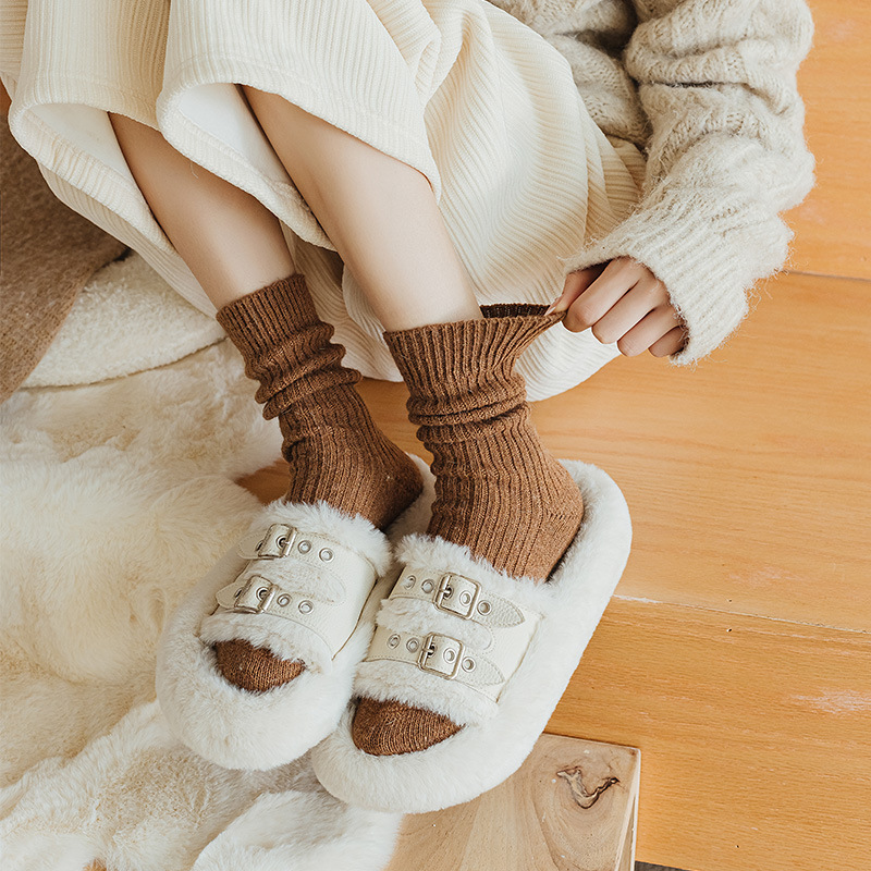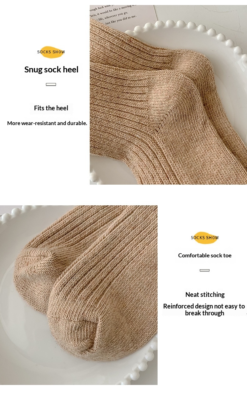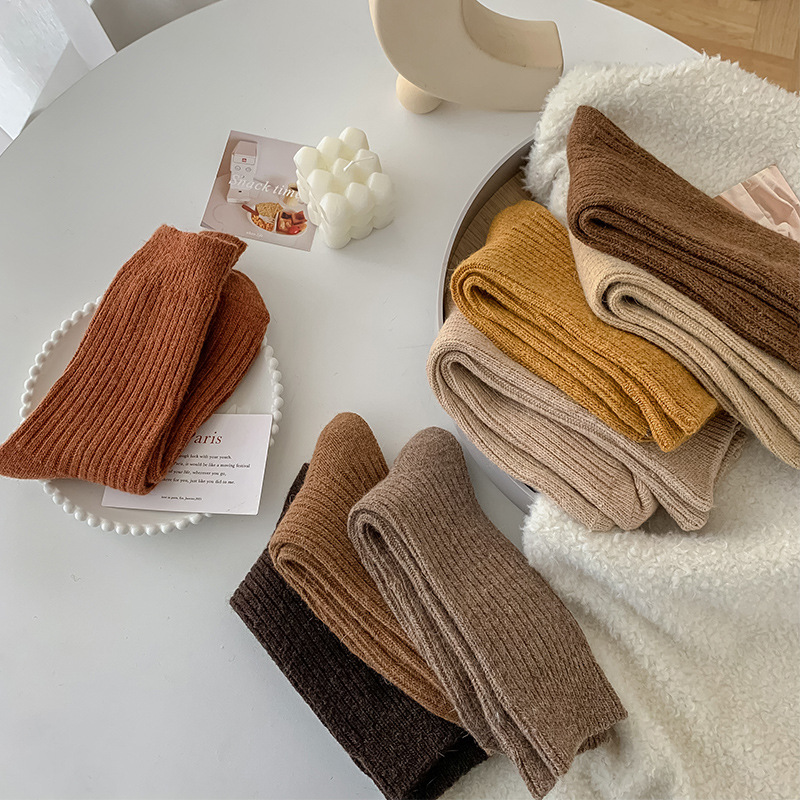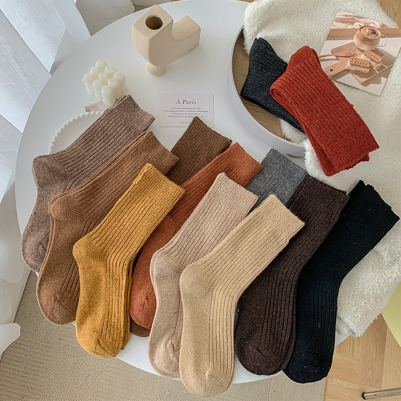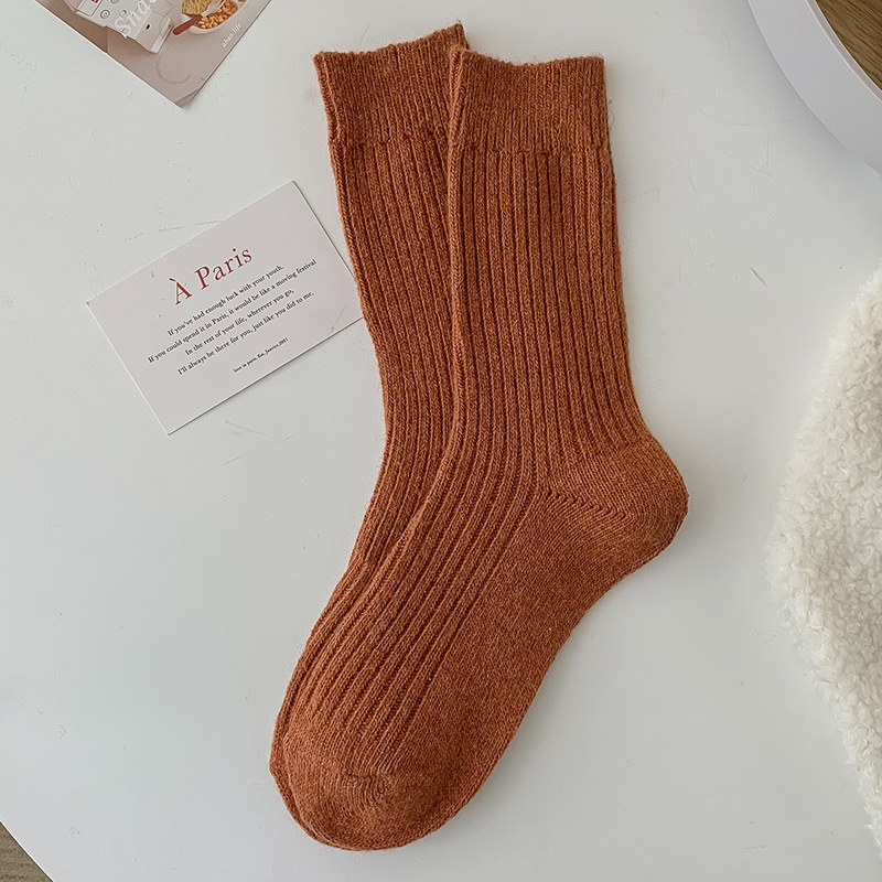 Solid-color Vertical-striped Wool Womens Socks For Fall And Winter