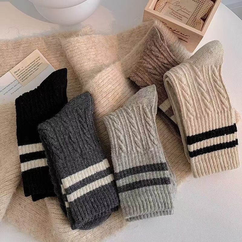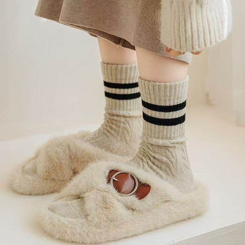 Thickened Womens Socks With Double Stripes