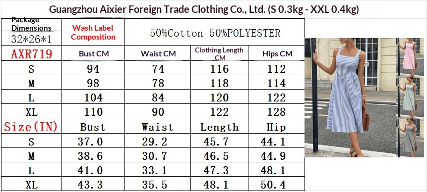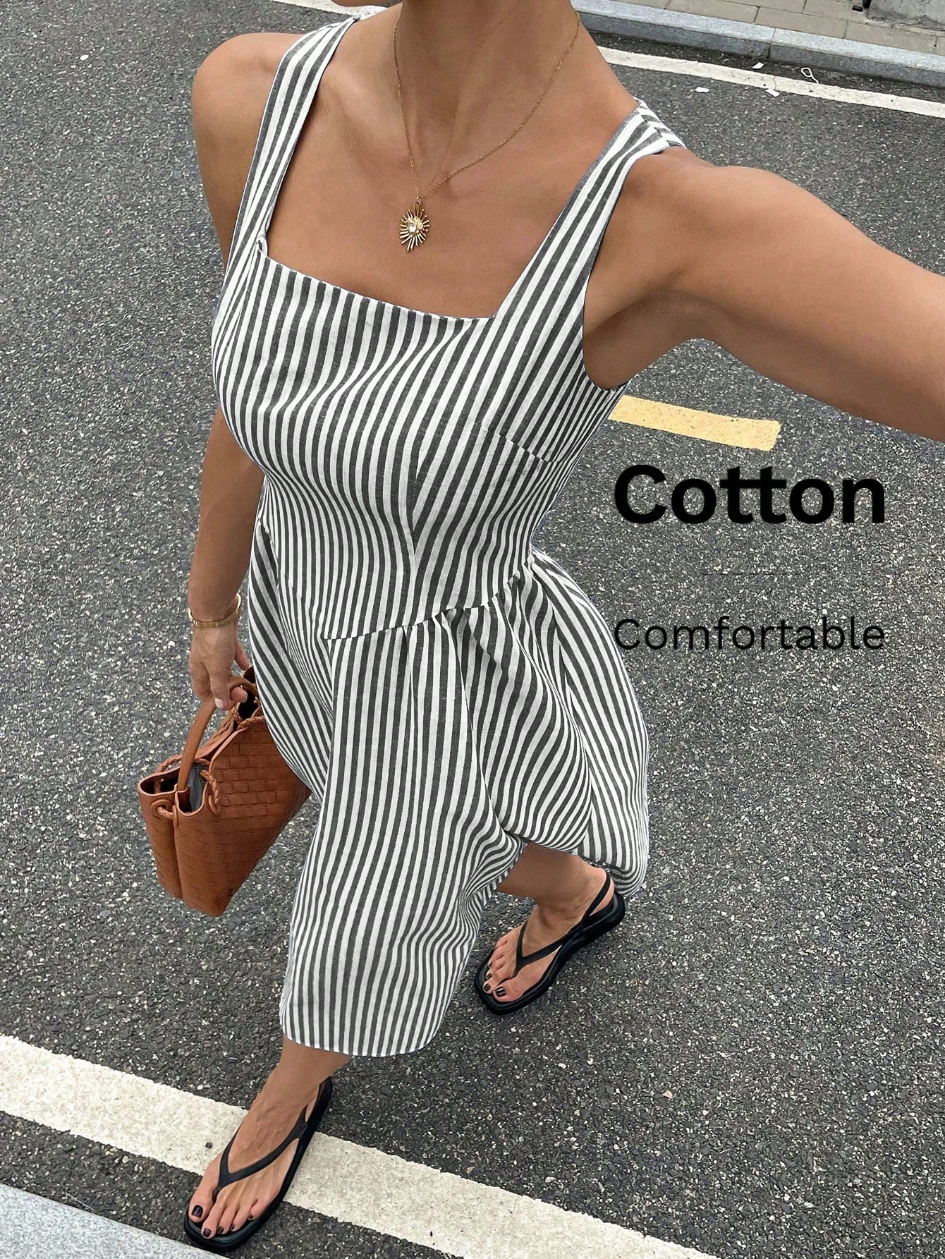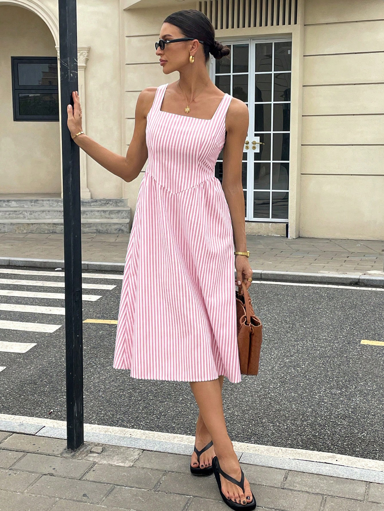 Womens Casual Sleeveless Strappy Square-Neck Colorblock Striped Dress