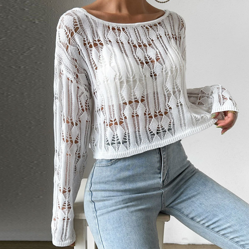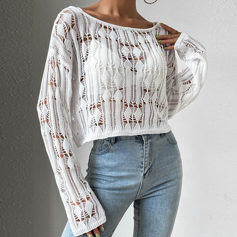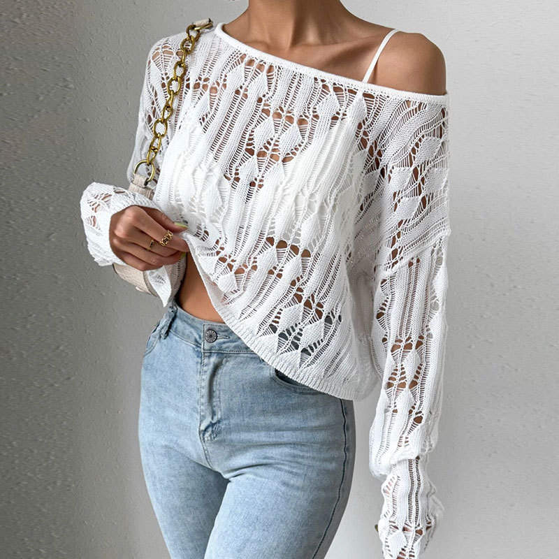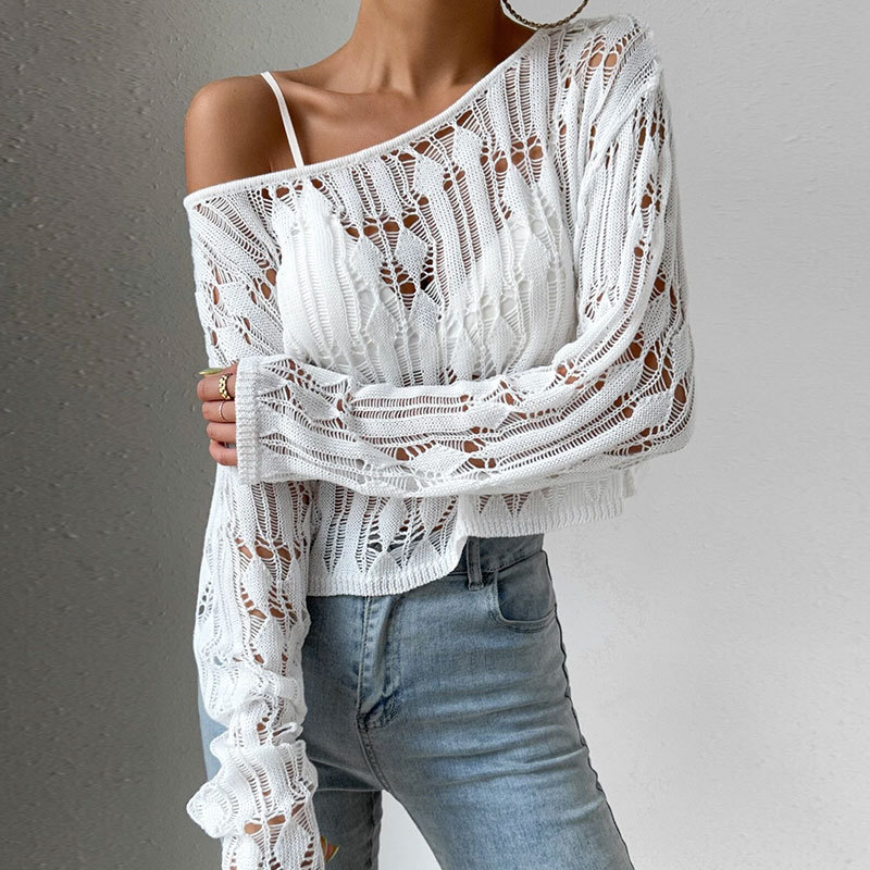 Women's Off-shoulder Sweater With Openwork Design Spring Summer Top