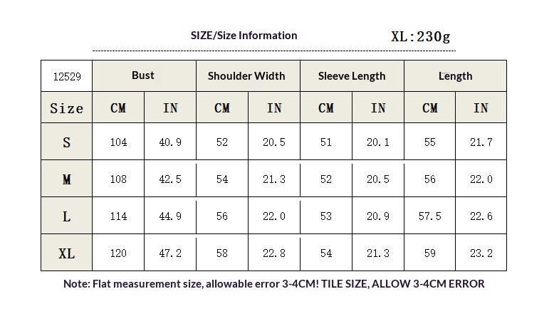 Sizes: S, M, L, XL