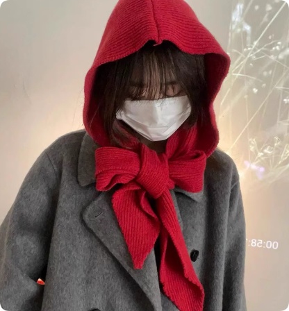 Women's Winter Hooded Scarf neck Warmer In Solid Color